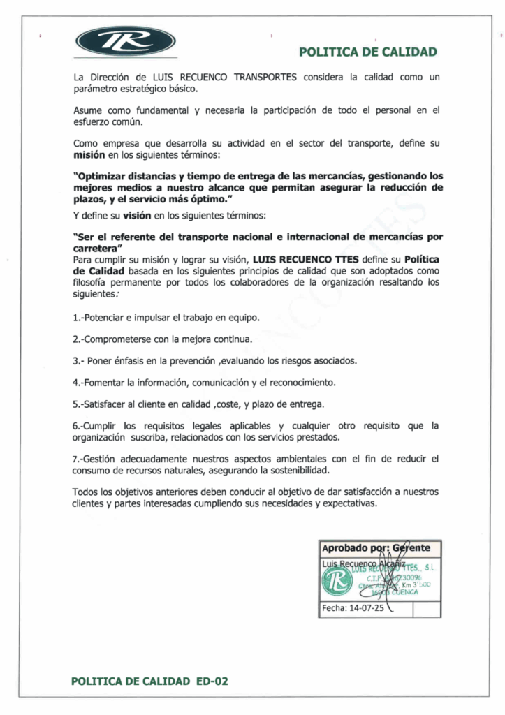 Luis Recuenco | Empresa de transporte sostenible por carretera